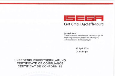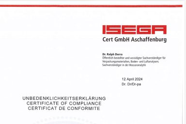 Untersuchung der Platten bezüglich Unbenklichkeit - Lebensmittelkontakt mit unseren Platten