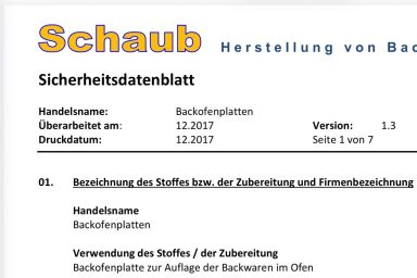 Sicherheitsdatenblatt für unsere Backofenplatten